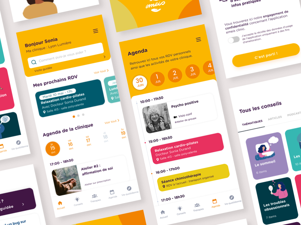 Côté administration, une interface permet aux cliniques de tenir facilement leur agenda à jour. Des personnels de clinique Emeis prennent part à l’équipe projet. Ce relais sur le terrain nous permet de proposer régulièrement des évolutions pour accompagner les nouvelles cliniques qui déploient l’application pour leurs patients.